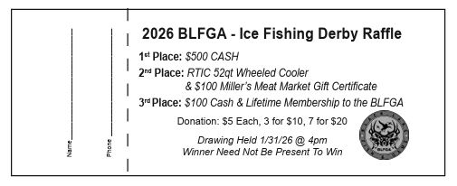 BLFGA 2026 Ice Fishing Derby RAFFLE